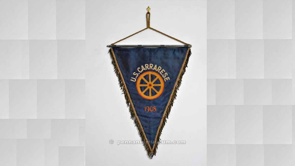 Tale devozione popolare potrebbe trovare fondatezza, assunta la legittima ipotesi che trae dal carro l’origine del toponimo Carrara, nella conseguenza logica di abbinare al carro la funzione essenziale della ruota. Circa i gagliardetti carraresi, mentre negli anni Sessanta erano finemente ricamati, negli anni Settanta e Ottanta, si presentano in campo azzurro con stemma al centro in giallo costituito da una ruota al cui interno era riportata la denominazione US CARRARESE – P.BINELLI.