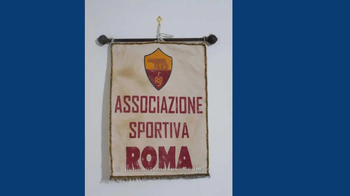 Negli anni Cinquanta si passa a stendardi in giallorosso e nel caso di incontri internazionali o amichevoli di rilievo viene aggiunto il ricamo della data della partita.