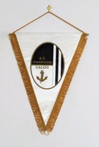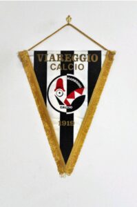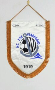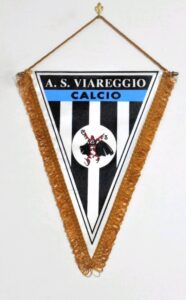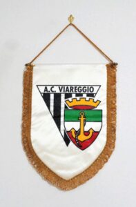 I gagliardetti della squadra, negli anni sessanta, presentavano righe verticali bianconere con i ricami dello stemma cittadino e della scritta A.S. Viareggio. Praticamente analoghi i vessilli realizzati negli anni settanta mentre, nei primi anni ottanta, si utilizzava uno stemma su ancile con il disegno della zebra (simbolo della squadra in virtù della colorazione delle maglie) con delle strisce verticali bianconere. Sempre su ancile anche lo stemma nei primi anni novanta che, tuttavia, non riportava più la zebra ma l’ancora e la gomena. Nello stesso periodo furono realizzati anche altri gagliardetti tra cui quello con il disegno della maschera carnevalesca cittadina (Burlamacco) nonché quello con la denominazione A.C. ESE Viareggio.