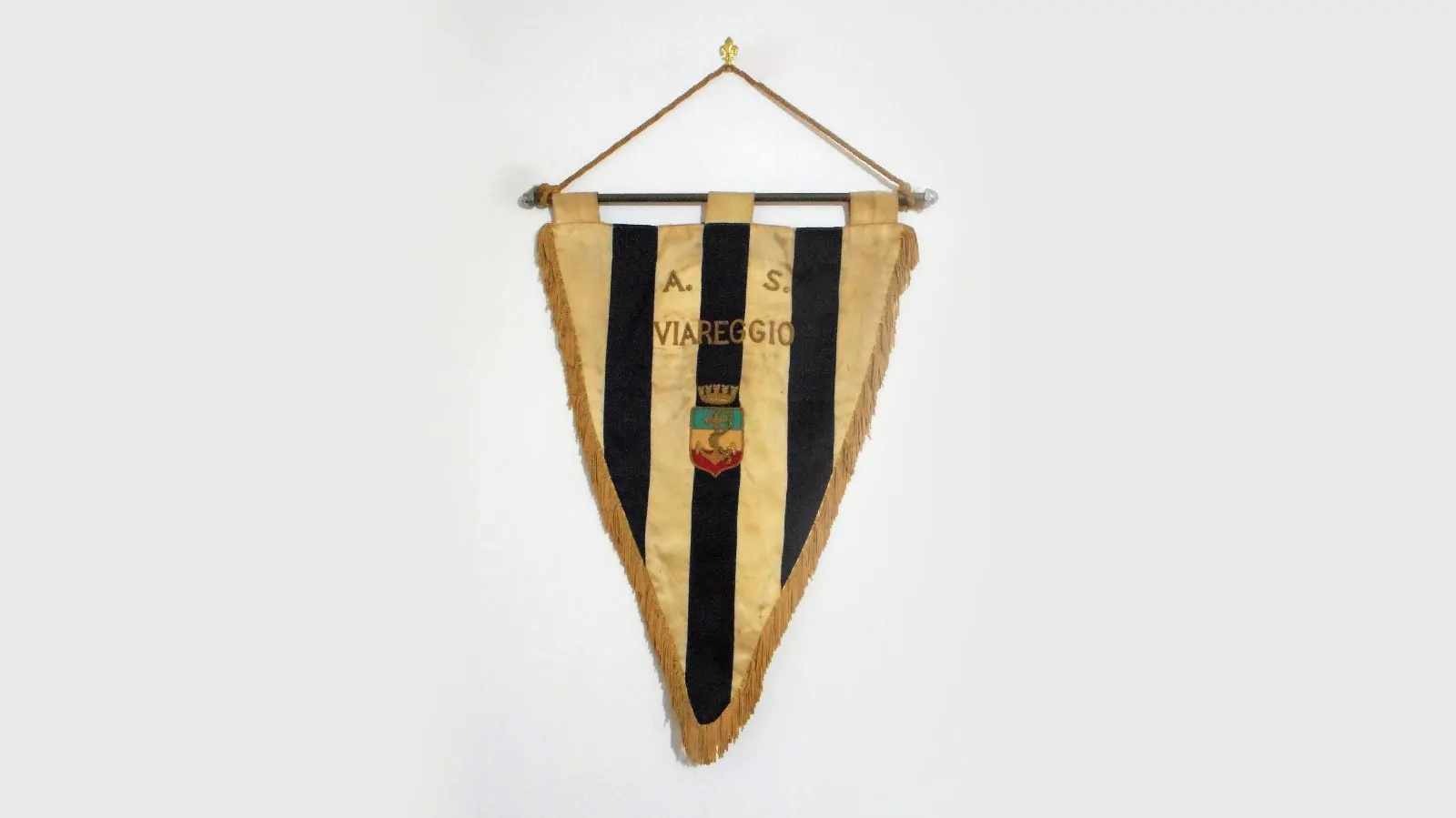 I gagliardetti della squadra, negli anni sessanta, presentavano righe verticali bianconere con i ricami dello stemma cittadino e della scritta A.S. Viareggio. Praticamente analoghi i vessilli realizzati negli anni settanta mentre, nei primi anni ottanta, si utilizzava uno stemma su ancile con il disegno della zebra (simbolo della squadra in virtù della colorazione delle maglie) con delle strisce verticali bianconere. Sempre su ancile anche lo stemma nei primi anni novanta che, tuttavia, non riportava più la zebra ma l’ancora e la gomena. Nello stesso periodo furono realizzati anche altri gagliardetti tra cui quello con il disegno della maschera carnevalesca cittadina (Burlamacco) nonché quello con la denominazione A.C. ESE Viareggio.