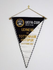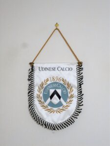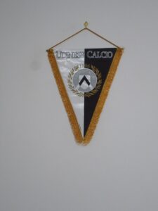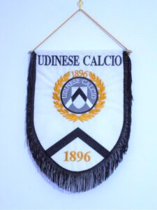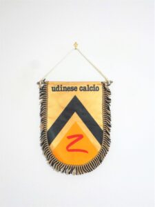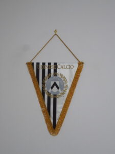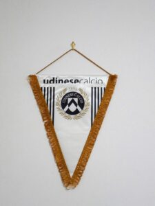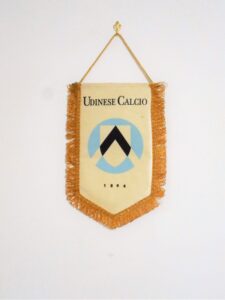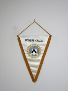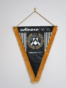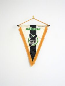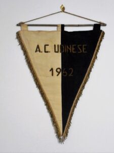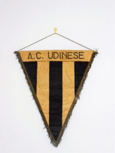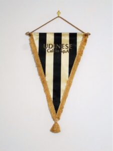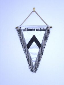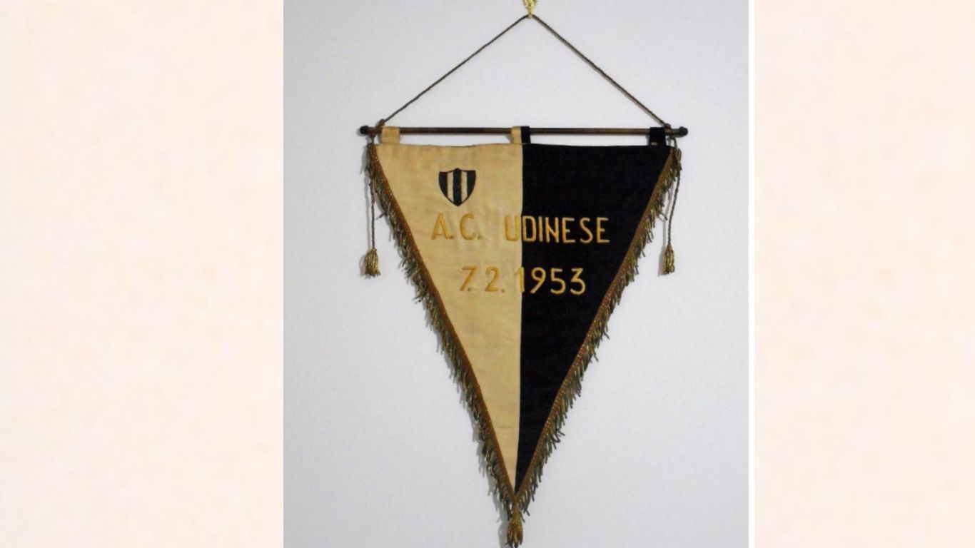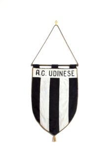 Nel dettaglio, nel periodo compreso tra gli anni Cinquanta e Settanta, i gagliardetti udinesi erano a strisce verticali o ripartiti in bianco e nero, con o senza lo stemma bianconero a forma di scudo.