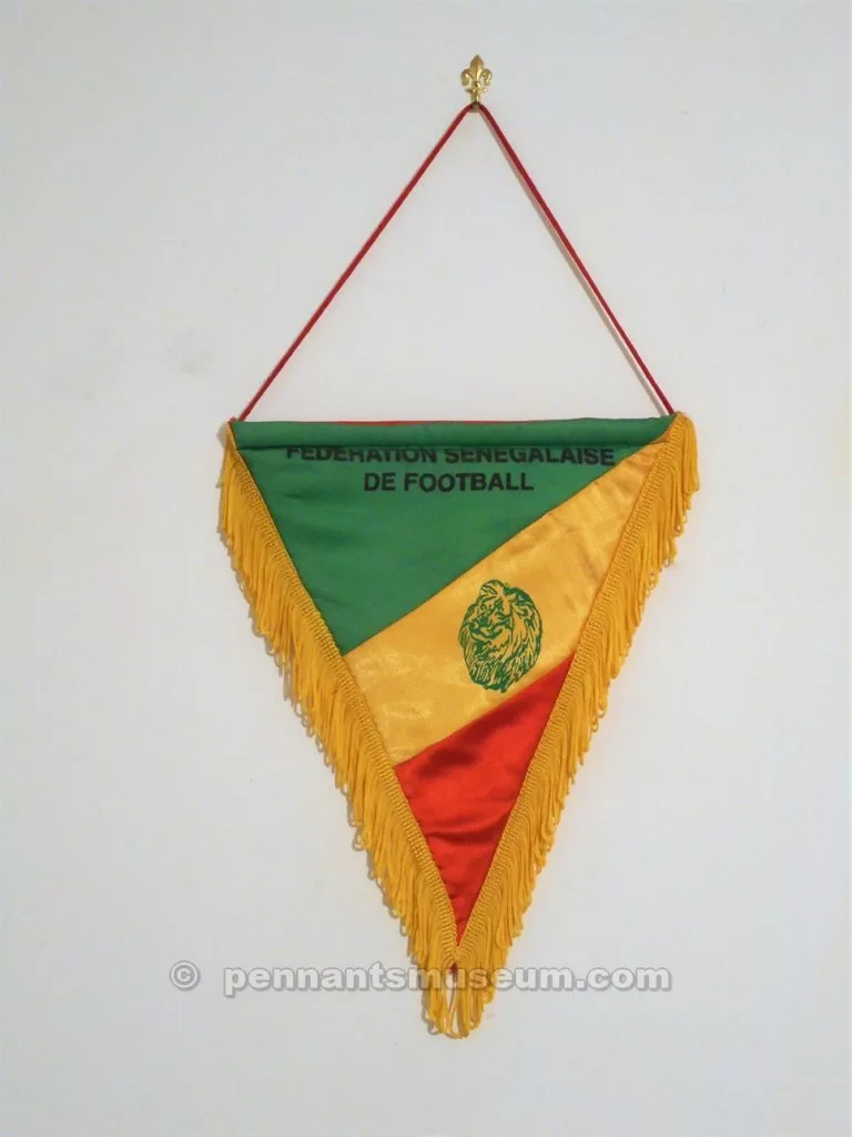 In quel periodo la federazione senegalese utilizzava gagliardetti del tipo presentato oggi. Con i colori della bandiera nazionale e l’immancabile simbolo del leone, tale gagliardetto veniva consegnato al capitano avversario ovvero a ciascuno dei giocatori avversari e in questo caso nella versione di dimensioni medie/piccole. Ancora oggi nei gagliardetti utilizzati dai “Leoni della Tèranga” sono presenti i colori della bandiera nazionale e l’iconico leone stampato anche sulle maglie.