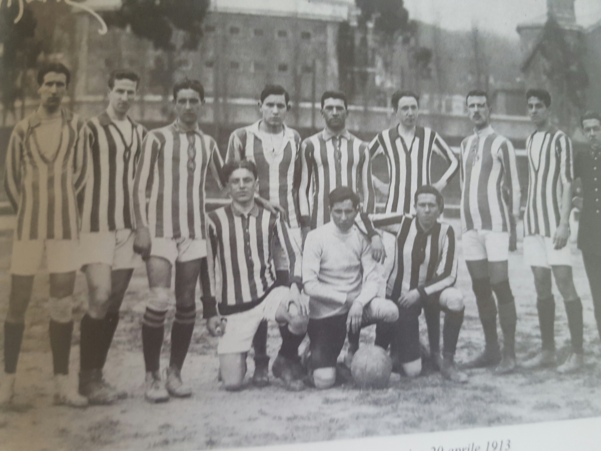 Angelo (Arezzo 26.11.1889 – Milano 18.02.1974) Molti sono gli aneddoti legati a questo giocatore dal carattere esuberante e un po’ bizzarro. Si dice che fosse famoso a Vicenza nei primi anni del secolo scorso per le sue acrobatiche quanto spericolate esibizioni in bicicletta lungo il muretto dei portici di Monte Berico, che terminavano con una frenata su una ruota sola e il manubrio puntato in alto. Alla fine della discesa si radunava ogni volta un capannello di spettatori che lo applaudivano e festeggiavano le sue acrobazie. Angelo frequentò l’Istituto Tecnico Ambrogio Fusinieri, conseguendo il diploma di ragioniere. In campo calcistico fu il più dotato tecnicamente dei tre. Sgusciante ala destra, giocò nell’Associazione Olimpia di Vicenza dal 1906 al 1908, poi dal 1908 al 1911 nell’Associazione Calcio Vicenza e infine, trasferitosi a Milano per motivi di lavoro, anche nell’Unione Sportiva Milanese dal 1911 al 1913. In quel periodo raggiunse infatti il fratello Alessandro, ingegnere aereonautico che lavorava nella progettazione di nuovi velivoli, mentre Angelo si occupava del collaudo e delle prove di volo. Angelo eccelse anche nel campo dell’atletica leggera e partecipò alle Olimpiadi di Stoccolma del 1912 nella specialità del salto in lungo. Purtroppo, a causa di un malessere, il giorno della gara non fu in grado di esprimersi al meglio. Si racconta infatti che avesse trascorso la notte precedente con un atleta giavellottista suo amico alla stazione di Stoccolma alla ricerca dei giavellotti che erano andati persi durante il viaggio nel vagone merci. Il freddo o probabilmente un’intossicazione alimentare gli preclusero la gioia della medaglia, che fu assegnata a un atleta che ottenne misure molto più basse degli standard abituali di Angelo. Ricordiamo che egli fu il primo atleta italiano a superare i sette metri nel salto in lungo e che le sue prestazioni nel salto in alto e nella corsa furono di assoluta eccellenza europea.