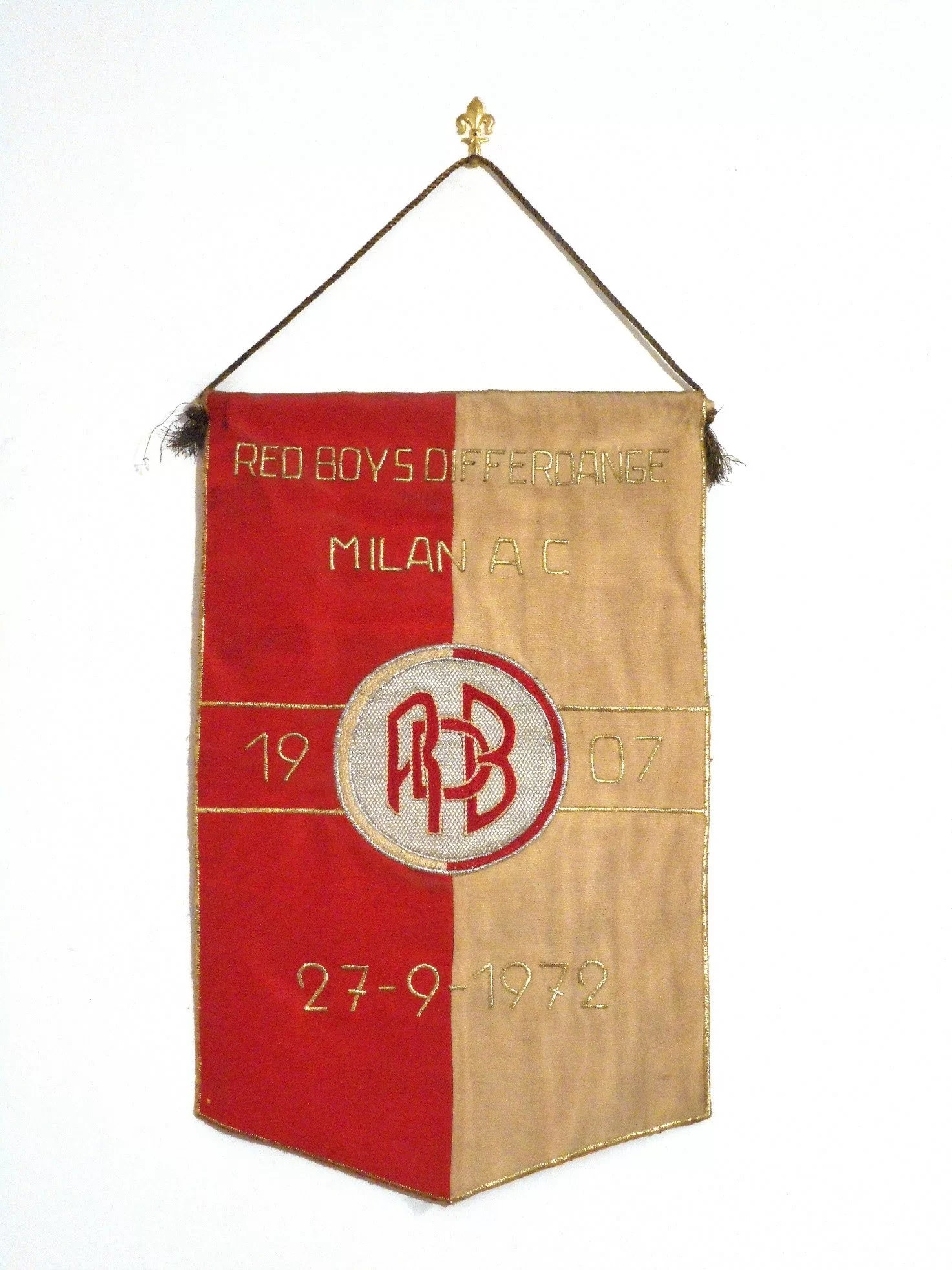 Gagliardetto dell’incontro Red Boys – Ajax valevole per la Coppa UEFA 1984 – 1985 e terminata 0-0. Al ritorno l’Ajax schiantò i lussemburghesi con lo storico passivo di 14 – 0