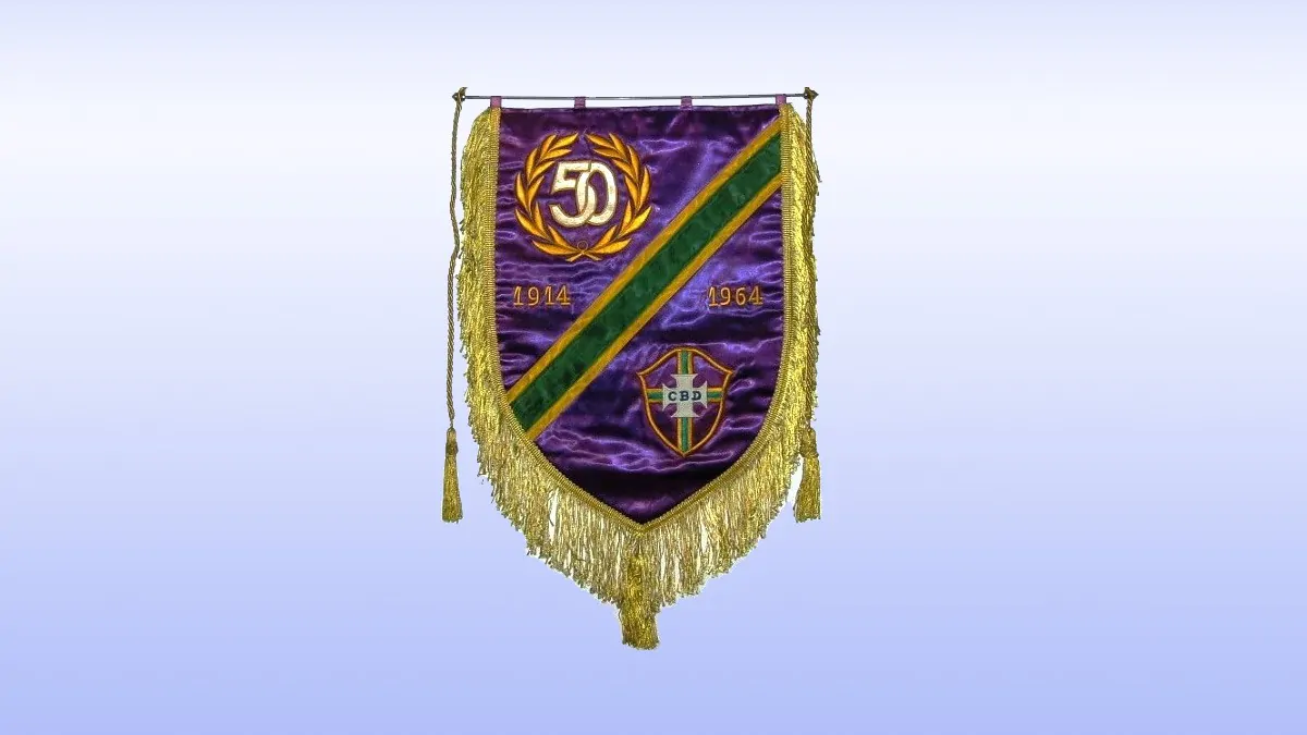Nel 1964 Il Brasile, all’epoca con la denominazione Confederação Brasileira de Desportos (CBD) decise di commemorare il cinquantenario della sua costituzione con la realizzazione di gagliardetti “speciali”. Su di loro, nei formati a scudo ovvero pentagonale, era apposto il logo del cinquantenario. Questo era composto dal numero cinquanta cinto da due rami di alloro ed in basso il ricamo dell’anno di fondazione. Dal lato opposto, invece, era presente lo stemma della federazione e l’annata della ricorrenza. Il tutto era separato da una banda trasversale con i colori nazionali verde e oro riportati su un fondo azzurro. Questi colori che per anni e tutt’ora caratterizza i gagliardetti delle rappresentative brasiliane.