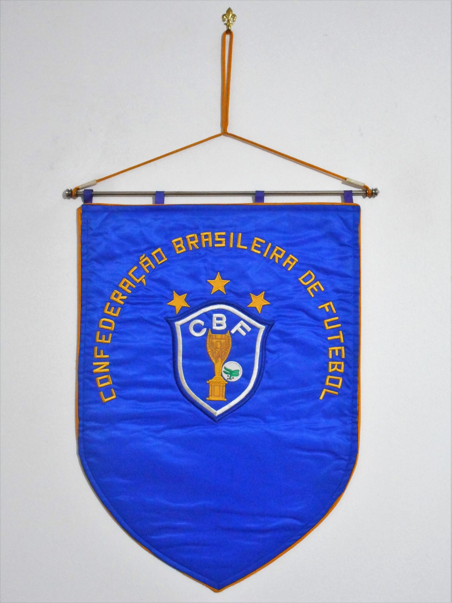 Il gagliardetto, privo dei dettagli della partita, riportava lo stemma della federazione brasiliana con il logo dell’Instituto Brasileiro do Cafè – IBC rappresentato da un ramoscello di pianta del caffè. Tale simbolo fu utilizzata, anche per le maglie, a partire dalla Coppa del mondo del 1982 e prosegui ad essere utilizzato fino ai mondiali del 1986. In quella circostanza la FIFA intervenne costringendo il Brasile a non utilizzare quel simbolo. Fu così che dopo la partita inaugurale contro la Spagna e la seguente contro l’Algeria, il Brasile indossò una casacca priva dello stemma con il simbolo del caffè. Dopo i mondiali tale simbolo venne abbandonato sebbene, per i gagliardetti, si continuò ancora a utilizzare per un breve periodo nel 1987.