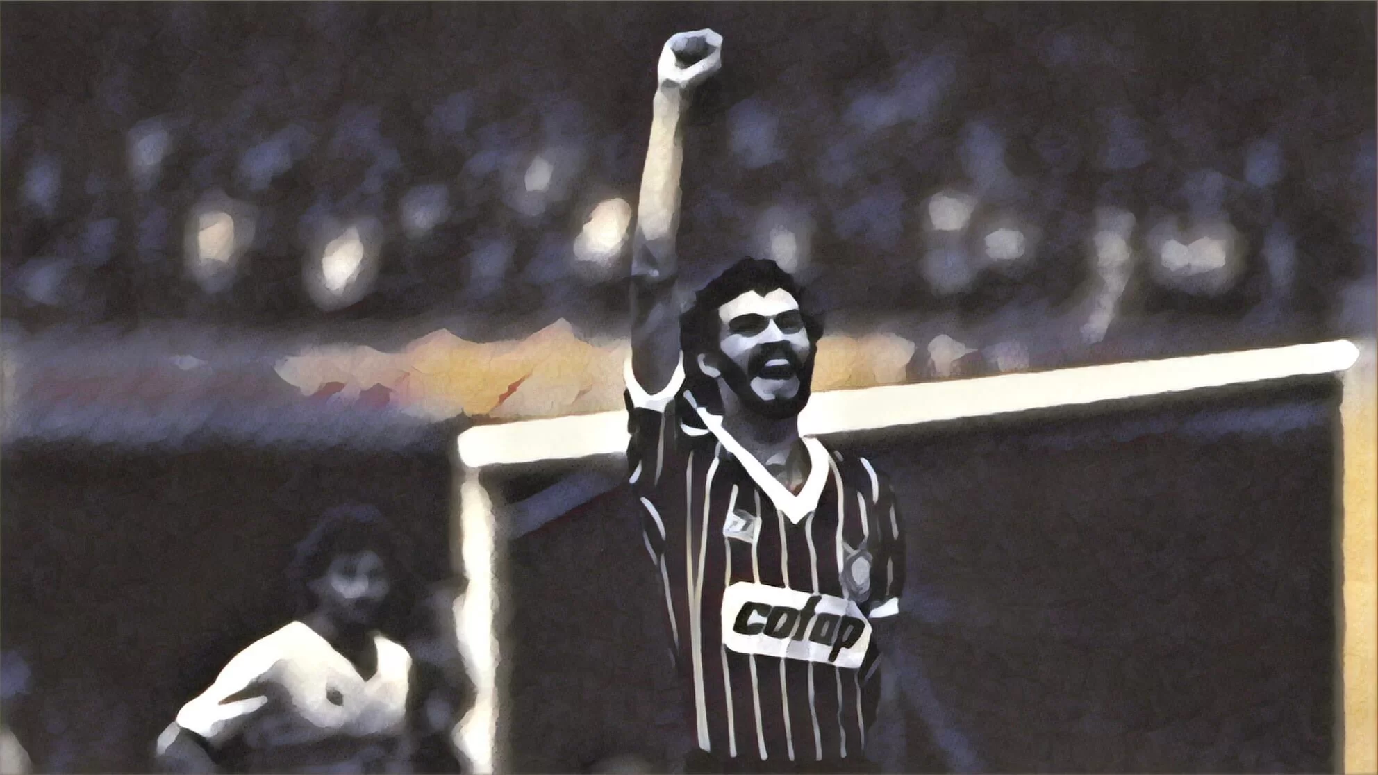 Del suo nome. Socrates ha spesso detto: “Quando è nato mio figlio e ho deciso di chiamarlo Fidel mia madre mi ha detto: “Non trovi sia troppo forte, troppo impegnativo per un bambino?” E io le risposi: “Mamma, pensa a quello che voi avete dato a me!” Diciamo che fu una scelta azzeccata, perché Socrates nel corso della sua carriera dimostrò di poter vestire benissimo i panni del “filosofo in campo”, anzi tutto quello che faceva era puramente filosofico. Conseguita la laurea in medicina all’Università di Sao Paulo il giovane preferì giocare a calcio piuttosto che cominciare la professione di medico. Fu in quegli anni che si avvicinò alle idee marxiste leggendo libri su libri e entrando sempre di più nel dettaglio non smettendo mai di studiare i grandi classici del comunismo. Quando arrivò al Corinthians, Socrates elaborò forse una delle più lucide e ben riuscite esperienze di autogestione dei calciatori, cioè la Democrazia corinthiana ossia l’organizzazione della squadra su basi non gerarchiche, quando Socrates lanciò questo esperimento il Brasile era nella morsa di una dittatura militare.