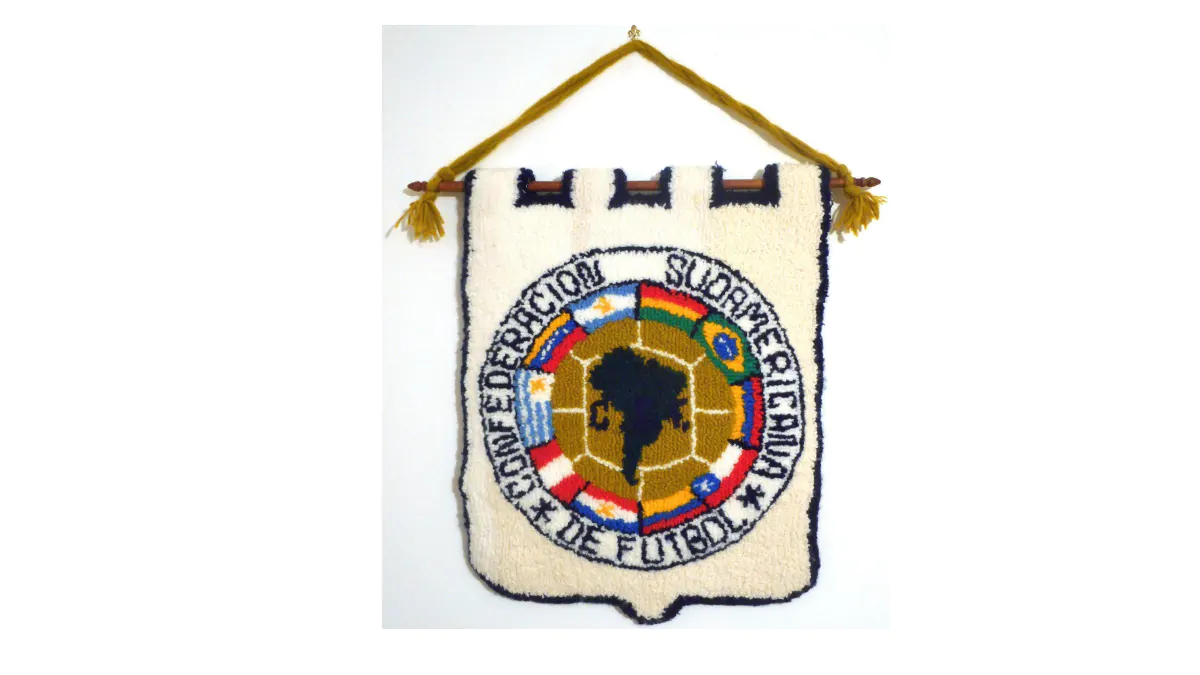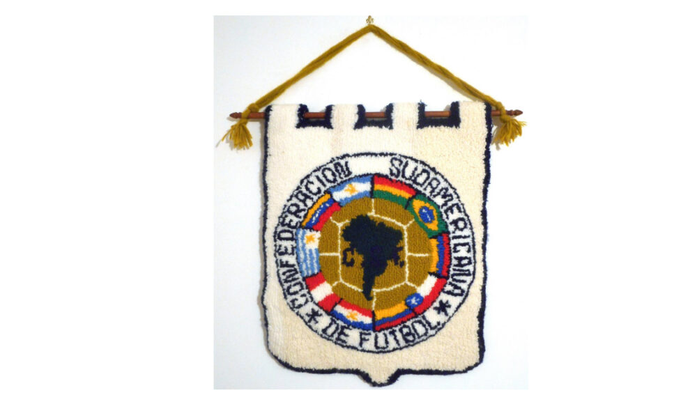 Agli inizi degli anni Ottanta si affermano, in Argentina, i curiosi ma splendidi gagliardetti realizzati da un’industria che per la prima volta ricorre a materiali innovativi. Dal peso del gagliardetto (superiore ai 2 kg), dal tatto del tessuto (sicuramente composto con lana ed altri materiali) dalla possibilità di realizzare scritte e simboli anche complessi e multicolore come nel caso dell’esemplare della Federazione Sudamerica, si evince che ci troviamo davvero di fronte ad un pezzo unico, per tipicità ed anche oneroso da realizzare: quello Sudamericano è un pezzo affascinante.