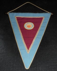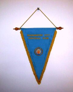 Nei gagliardetti, partendo dalla disamina dagli anni Sessanta, si passa da un curioso formato triangolare azzurro e amaranto su cui è apposto lo stemma circolare in uso in quel periodo per poi giungere alla versione contenente nella parte inferiore dello scudo la rosa dei Lancaster, emblema che compare nei gagliardetti agli inizi degli anni Ottanta.
