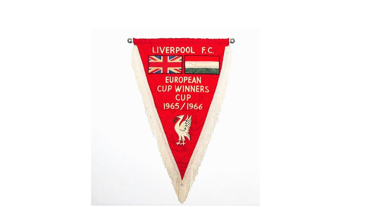 In quella edizione il Liverpool, tra le altre, incontrò anche la Juventus al primo turno. La squadra inglese riuscì a qualificarsi, in maniera sicuramente non agevole nell’ambito della doppia partita prevista. Proseguì nella competizione incontrando, ai quarti di finale, gli ungheresi dell’Honved a cui si riferisce il gagliardetto odierno. Davvero caratteristici i gagliardetti che il Liverpool utilizzava in quella stagione. Oltre all’iconico simbolo del cormorano (il liver bird) trovavano posto la bandiera inglese e quella della nazione di appartenenza della squadra avversaria.