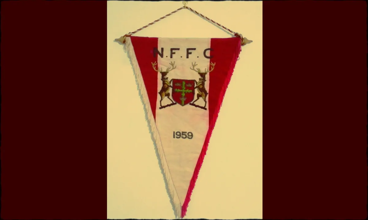 Celato da un anonimo acronimo (NFFC) questo gagliardetto ci riporta alla grande tradizione inglese nella produzione di esemplari di rara bellezza. In primo luogo lo stemma al centro del gagliardetto realizzato con un capolavoro del ricamo e poi altri particolari che oltre a questo gagliardetto appartengono alla storia di una squadra gloriosa come il Nottingham Forest. E qui, pensando alle grandi vittorie del club, l’annata 1959 ci riporta alla conquista della seconda Football Association Cup della squadra nata nel 1865 ed inserita, a pieno titolo, tra le squadre “fondatrici” del calcio in Inghilterra. Diverse sono le curiosità che ci riportano al Nottingham Forest. La prima, nella denominazione della squadra, con la parola “Forest” assunta poiché la squadra un tempo disputava gli incontri casalinghi presso il Forest Recreation Ground, terreno che sorgeva all’interno della foresta di Sherwood la mitica casa dell’eroe di Nottingham per eccellenza Robin Hood.