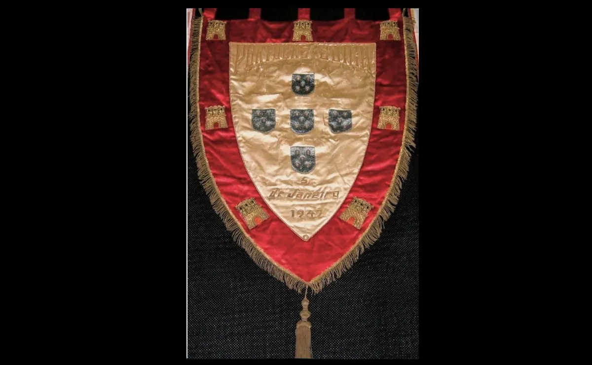 Prima nota d’obbligo è quella relativa al significato dell’araldica riportata sul gagliardetto. I cinque stemmi su sfondo azzurro – ciascuno contenente altrettanti bisanti ovvero figure circolari di piccolo formato – si mischiano alla leggenda riferita al primo re del Portogallo, Alfonso I Henriques, il quale prima della battaglia di Ourique, combattuta nel XII secolo e considerata fondamentale per la storia portoghese, ebbe in sogno la visione di Gesù Cristo in croce che gli avrebbe profetizzato la vittoria se avesse modificato il vessillo in uso.