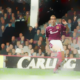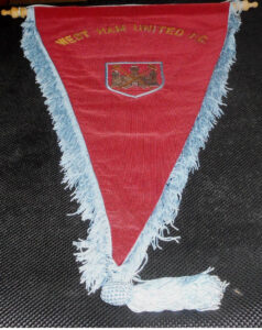Ricordiamo la grandezza di questo club con un gagliardetto utilizzato tra la fine degli anni Sessanta e la prima metà degli anni Settanta. Granata con la scritta ricamata della denominazione del club in alto e con l’iconico stemma al centro che ripercorre decenni di vita della squadra. I martelli incrociati a rappresentare le origini della squadra. Questi rappresentavano gli operai dei cantieri navali del Tamigi e sono sovrapposti alla facciata del “Boleyn Castle” il castello abitato da Anna Bolena. Un maniero sito nei pressi del vecchio stadio dei “martelli”, il Boleyn Ground.