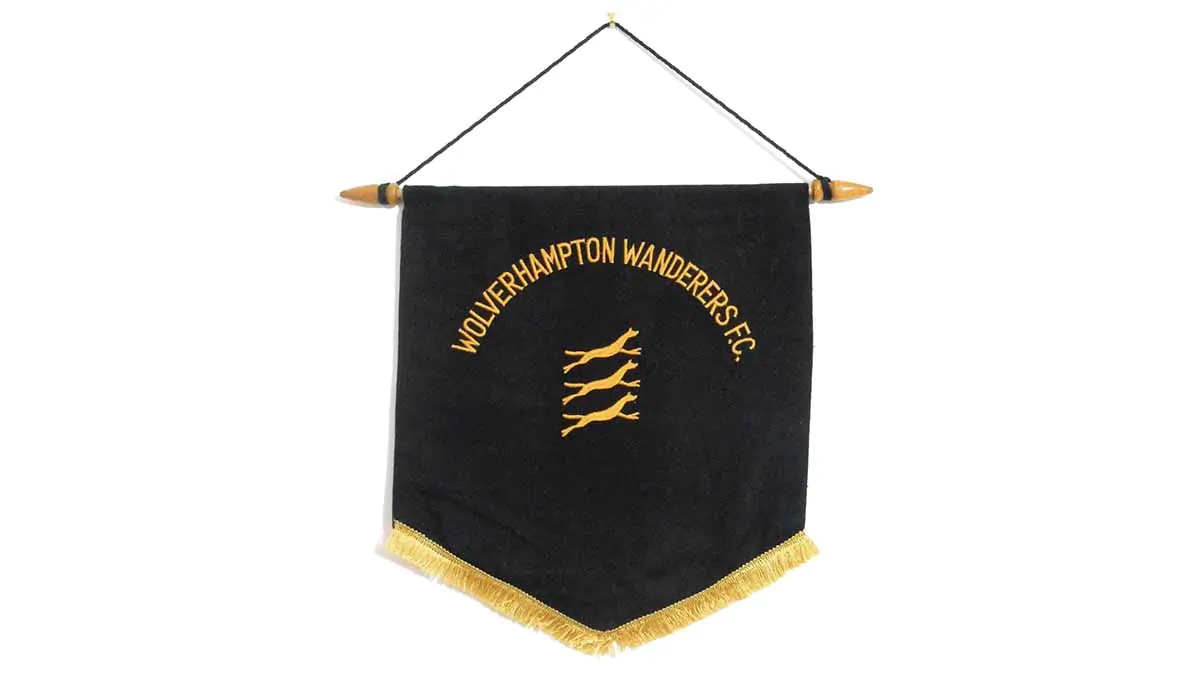 Il gagliardetto odierno ricorda una squadra che ad un certo punto, nel suo periodo d’oro negli anni Cinquanta, venne ribattezzata come “i campioni del mondo”. I giornalisti d’oltre Manica erano convinti che la casa del football fosse l’Inghilterra e che nessuno poteva mettere in discussione tale titolo. In realtà così non era. È altrettanto vero, però, che taluni club inglesi, grazie anche ai suoi illuminati manager, hanno dato vera e propria linfa alla crescita del calcio internazionale. Il Wolverhampton utilizzò nel periodo tra il 1974 ed il 1979, gagliardetti in panno con il ricamo di tre volpi.