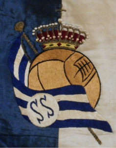 26 Febbraio 1928 riporta il ricamo del lato posteriore di questo gagliardetto dell’attuale Real Sociedad allora Sociedad de Football de San Sebastián. Un pezzo di storia del calcio iberico relativo all’incontro di Coppa del Re tra il San Sebastian ed i catalani del Club Deportivo Europa. Il match terminò con la vittoria per 1-0 della squadra basca.