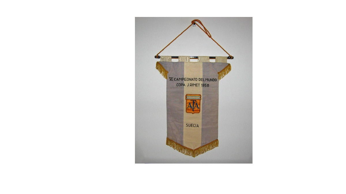 Biancoceleste era il gagliardetto che l’Argentina utilizzò ai mondiali del 1958 disputati in Svezia. Una competizione che i sudamericani chiusero in maniera tutt’altro che brillante. Su tale gagliardetto, dal formato senz’altro desueto ma non per questo di un’estetica apprezzabile, sfoggiava il ricamo riguardante la competizione. Il retro del gagliardetto era formato da un prezioso tessuto giallo.
