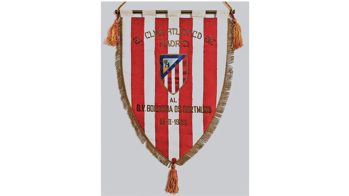 Nel periodo tra gli anni Sessanta e Settanta, in occasione delle sfide internazionali, l’Atletico Madrid realizza gagliardetti – prodotti da un’azienda cittadina – sicuramente di gran fascino. In formato triangolare ovvero a scudo (come prevalentemente diffuso nel periodo compreso tra i Sessanta ed i primi anni Settanta), e fatti con un prezioso tessuto. Inoltre presentavano delle finiture di rilievo ed un ricamo che richiama la grande arte spagnola nel settore, è apposto lo stemma a scudo della squadra che s’identifica con l’araldica cittadina.