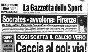 Nell’Agosto di 35 anni fa, La Gazzetta dello Sport dedica la prima pagina ad entrambi, in un incrocio di mercato che diventa di pubblico dominio: “Socrates avvelena Firenze”.