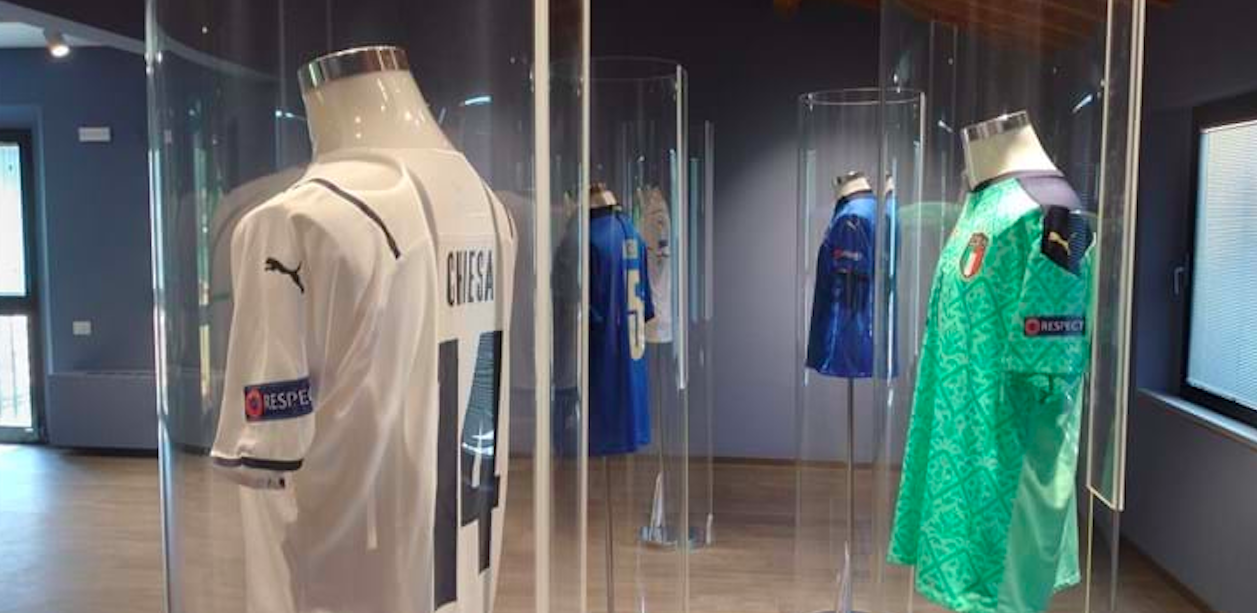 GLIEROIDELCALCIO.COM – Dopo la vittoria della Nazionale nella serata di ieri, il Museo del Calcio di Coverciano rende omaggio ai ragazzi di Mancini, con una nuovissima sezione dedicata ai cimeli azzurri della spedizione europea appena conclusa. Tante le maglie da poter ammirare, da quella del portierone Donnarumma a quella dell’esplosivo Chiesa. All’entrata del museo, per rimanere in tema, anche la copia della Coppa del 1968.