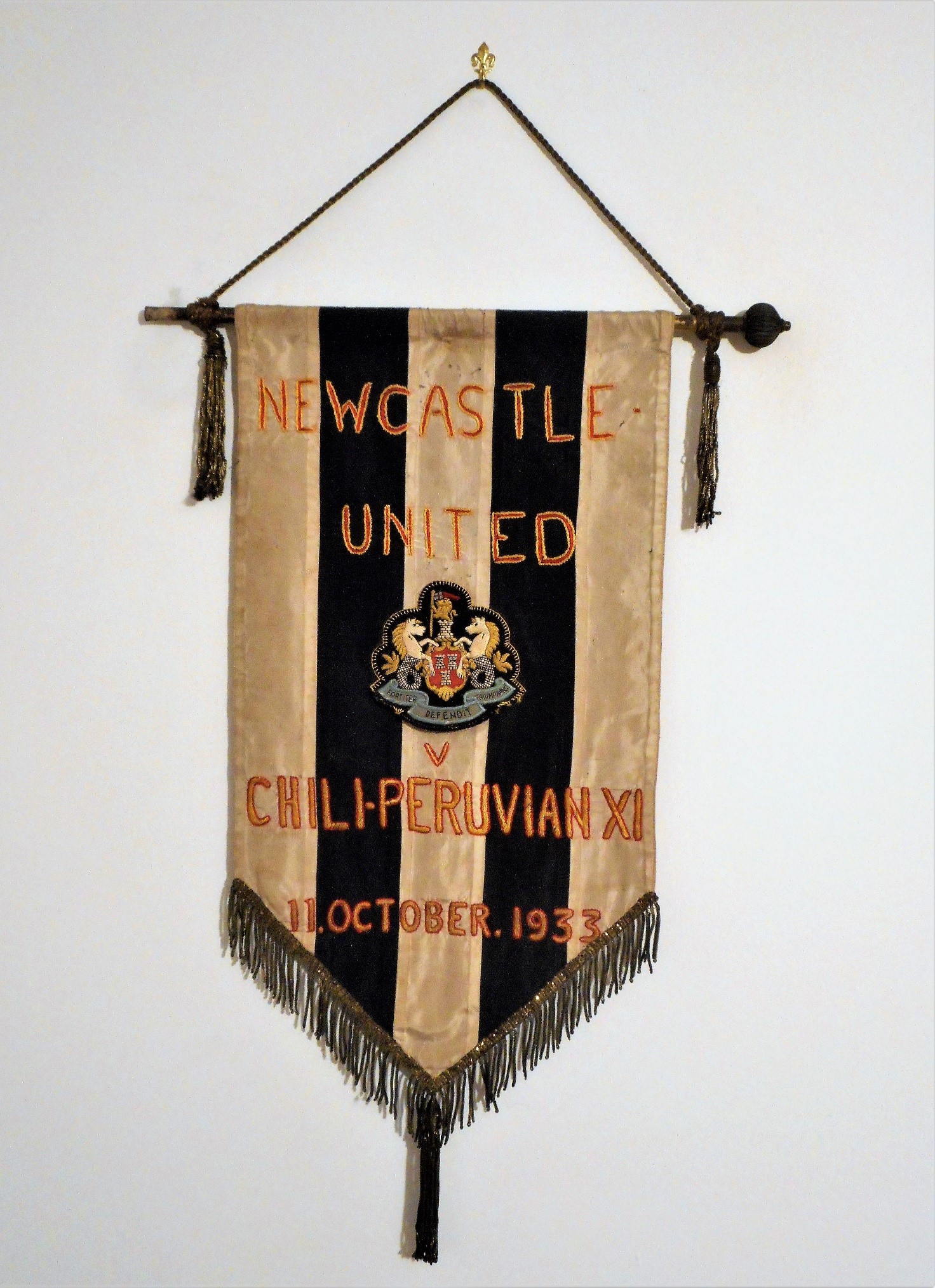 Questa è la storia che arriva dal gagliardetto del Newcatle United che l’11 ottobre 1933 incontrò in amichevole la cosiddetta “Combinado del Pacifico”, una selezione composta da giocatori peruviani e cileni che tra il 1933 e il 1934 giocò un numero abnorme di amichevoli (ben trentanove) in dieci Nazioni del Vecchio continente.