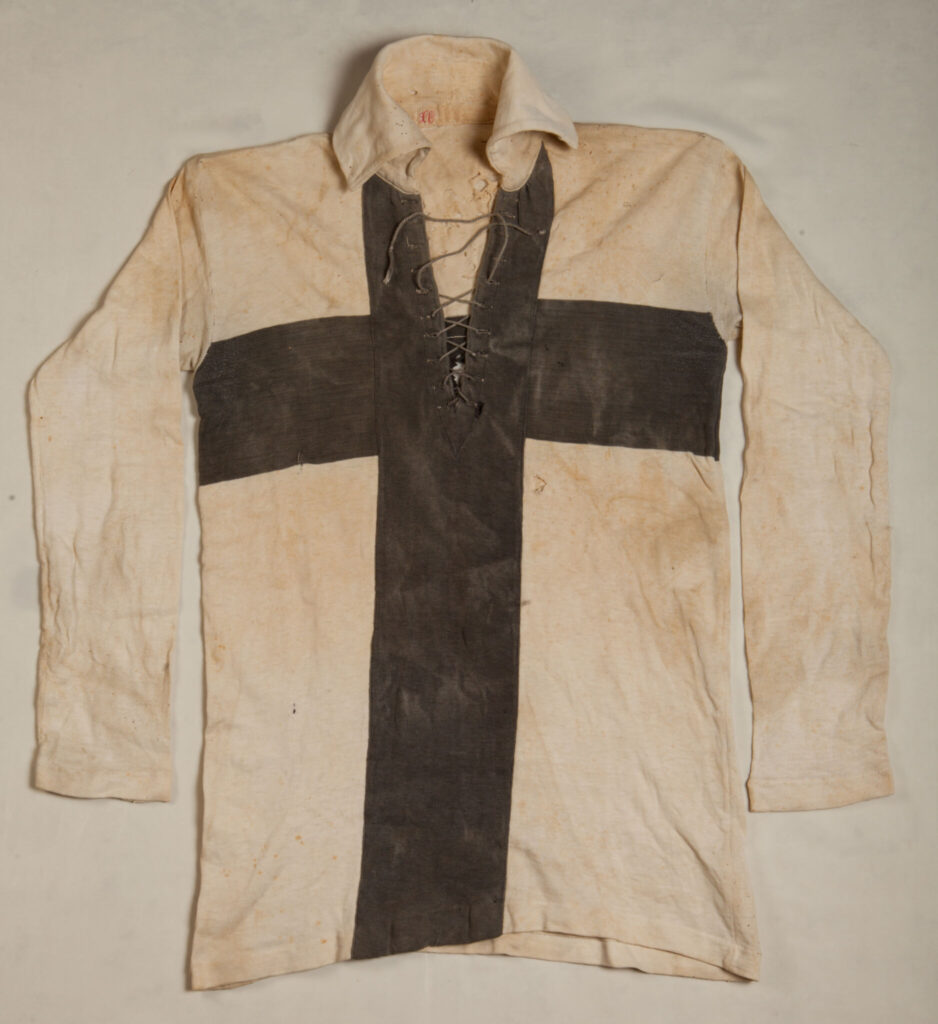 Apriamo insieme la valigetta e magicamente tutto piegato e ben riposto, spuntano fuori, la maglia del Parma crociata, i pantaloncini neri, i calzettoni e le scarpe chiodate del 1918/1920. Una maglia crociata, anzi un intero completo del Parma di inizio secolo. Mi sono dovuto sedere dall’emozione. Ho subito detto che era una cosa incredibile, dal valore inestimabile, mai vista prima e che mai mi sarei aspettato di vedere una cosa del genere. La stessa persona che me l’ha portata, raccontandomi che era di suo papà e che l’ha sempre conservata e portata con sé in tutti i traslochi che ha fatto nella sua vita, si è commosso vedendo la mia reazione.