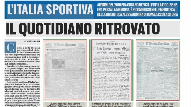 Poi, improvvisamente, nel 1923 questo giornale ha smesso di essere scritto, stampato, pubblicato e letto. È stato sostituito da un altro quotidiano, il Corriere dello Sport, sempre edito a Roma, che è diventato anche l’organo ufficiale del Coni, e del quotidiano L’Italia Sportiva si è persa rapidamente ogni traccia e ogni memoria per più di un secolo… Fino a quando è stato ritrovato, appunto, nelle polverose sale della Biblioteca Universitaria Alessandrina di Roma, nella sezione degli archivi emerotecari.