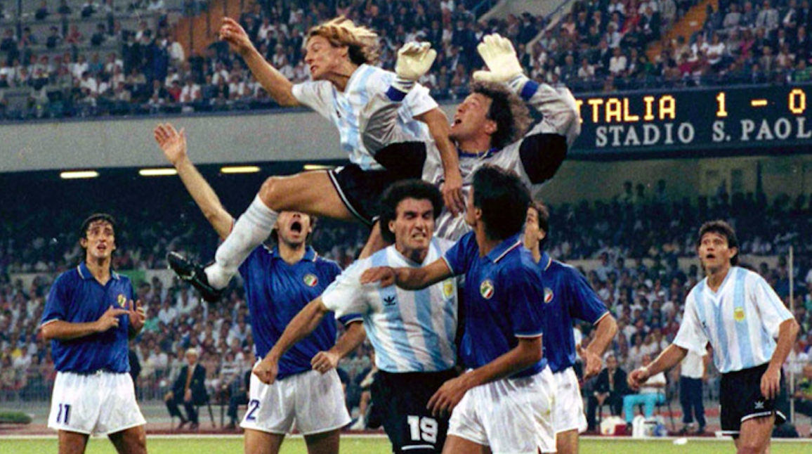 […] La semifinale doveva essere solo l’ennesima tappa della marcia trionfale, però si gioca a Napoli. Cosa già prevista, avendo la finale all’Olimpico. Non prevista era invece la possibilità di avere contro l’Argentina. Perché Argentina significa Maradona e Maradona significa Napoli. Va detto che la possibilità dell’Argentina a Napoli era remota: era stata inserita nel tabellone opposto con la semifinale a Torino. La partita scorre tra un’Argentina che cerca il gol con continuità pur arrivando alla conclusione sempre in modo sporco o impreciso e un’Italia che nella sua testa vorrebbe ripartire, ma a cui il pallone sembra scottare veramente troppo al contatto con i piedi per riuscire a creare una manovra pulita. Se si riescono ad associare ne esce fuori una trama interessante, ma manca la tattica per poter rendere riproducibile queste associazioni in campo. Insomma l’Italia non gioca male, ma non ha gli strumenti tattici per poter dare il meglio al talento a disposizione, Giannini e Donadoni su tutti. L’Argentina, che ha meno talento distribuito, sembra sfruttare meglio le sue qualità in campo.
