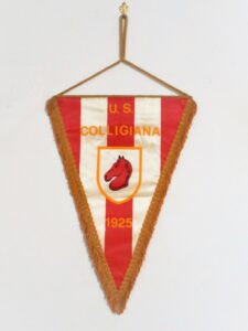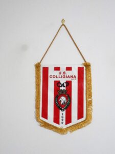 Di contro, in tutti gli altri vessilli della Colligiana, la testa del cavallo non risulta libera ma elegantemente imbrigliata ed abbinata a un giglio quale dimostrazione della antica “amichevole” sudditanza a Firenze. Negli anni Novanta i gagliardetti sono abbastanza similari tra loro con strisce verticali bianco e rosse, stemma con la citata testa di cavallo, denominazione e anno di costituzione.