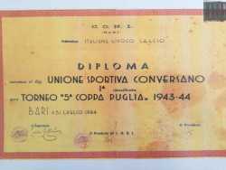 GLIEROIDELCALCIO.COM (Massimiliano Morelli) – Quando nel gennaio del 1944 il valoroso generale Lucas sbarca al comando dei suoi anfibi anglo-americani sulle coste di Anzio, non può immaginare che l’impresa, neanche perfettamente riuscita, di aggirare la tenace linea «Gustav», piazzata dai tedeschi a guardia di quel che resta dell’Asse, sarà il calcio di inizio, è il caso di dirlo, di un’altra altrettanto valorosa epopea. Quella dell’Unione Sportiva Conversano e di uno scudetto fantasma, una favola semisconosciuta, nascosta a piè di pagina negli annali della grande storia dell’Italia Liberata.