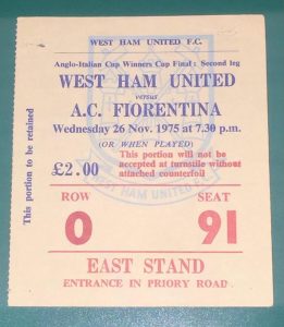 La Fiorentina di Mazzone contro il West Ham di John Lyall. L’andata, giocata nel mese di Settembre, aveva visto i viola vincere per un gol a zero con una rete messa a segno dal baffuto Guerini, decisivo come nella finale di Coppa Italia contro il Milan e, quella sera, abile a sorprendere il portiere Day con un tiro velenoso.