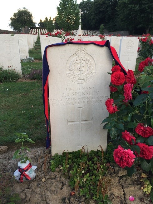 Nelle foto. A sinistra James Spensley, in veste di Ufficiale del Royal Army Medical Corps. A destra la sua tomba nel cimitero militare di Niederzwehren, a Kassel, in Germania.
