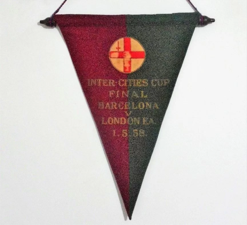 Di quella finale presentiamo un cimelio indubbiamente unico: il gagliardetto del London F.A. (selezione di cui facevano giocatori provenienti da 11 diversi club londinesi) consegnato ai catalani prima della finale di ritorno giocata a Barcellona il 1° maggio 1958.