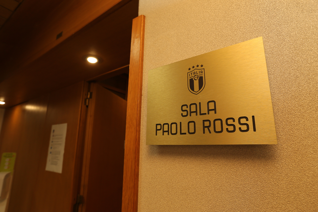 ‘Sala Paolo Rossi’: con la targa apposta questa mattina la Sala del Consiglio Federale è stata ufficialmente intitolata all’eroe del ‘Mundial ‘82’, un omaggio dovuto per una delle leggende del calcio italiano, venuto tragicamente a mancare lo scorso dicembre all’età di 64 anni. Un campione diventato il simbolo del trionfo azzurro al Bernabeu, quando l’Italia del calcio alzò al cielo la sua terza Coppa del Mondo facendo piangere di gioia un Paese intero. Un campione che da oggi darà il nome alla Sala in cui si assumono le decisioni più importanti per il futuro del nostro calcio, un movimento che Paolo Rossi ha contribuito a far crescere a suon di gol, trascinando la Nazionale verso il trofeo più ambito.