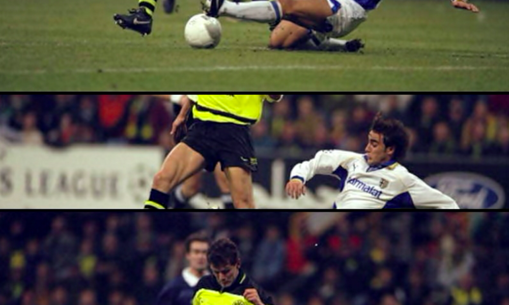 […] Il 5 novembre si gioca la gara più attesa, quella al Westfalenstadion di Dortmund fra il Borussia ed il Parma. […] Il Parma non si spaventa, ma il Borussia Dortmund è uno schiacciasassi, attacca, i giocatori incitano il pubblico che con un frastuono assordante mette i brividi ai gialloblu che chiudono comunque il primo tempo sullo 0-0. […] Nella ripresa il Borussia spinge ancora più forte e dopo 5 minuti trova il vantaggio grazie all’ex juventino Andreas Moller, un colpo durissimo per il Parma che fatica a reagire e subisce al 75′ anche il 2-0 firmato ancora da Moller. Il Galatasaray intanto batte lo Sparta Praga e la classifica, a due giornate dalla fine, si configura col controsorpasso del Borussia Dortmund che si riprende la vetta con 9 punti, lascia il Parma a 7, lo Sparta a 4 e il Galatasaray a 3.