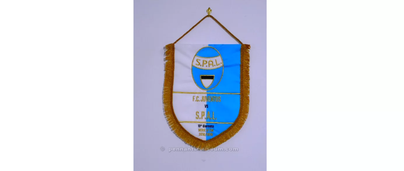 Fedele alle storiche tradizioni e ai relativi simboli è il gagliardetto che la squadra ferrarese utilizzò nella stagione 2018 – 2019. Nel formato a scudo bianco e celeste, il gagliardetto riporta, oltre allo stemma ricamato della Società i dettagli dell’incontro. Tale gagliardetto veniva consegnato al capitano della squadra avversaria nonché al Direttore di gara e ai suoi assistenti.