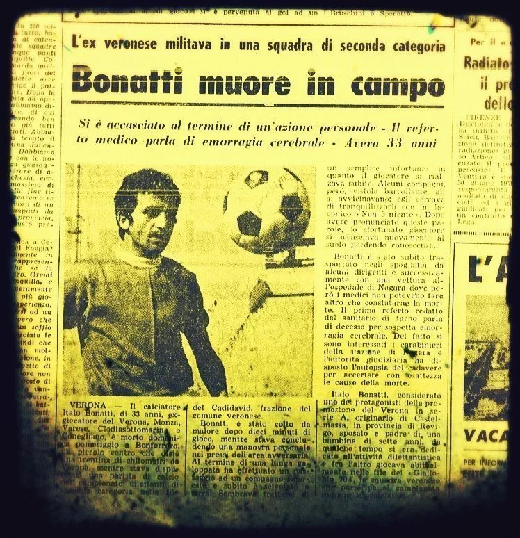 È il 1° maggio del 1977, Bonatti è sul campo di Bonferraro per disputare, con la maglia del Cadidavid una partita di seconda categoria.