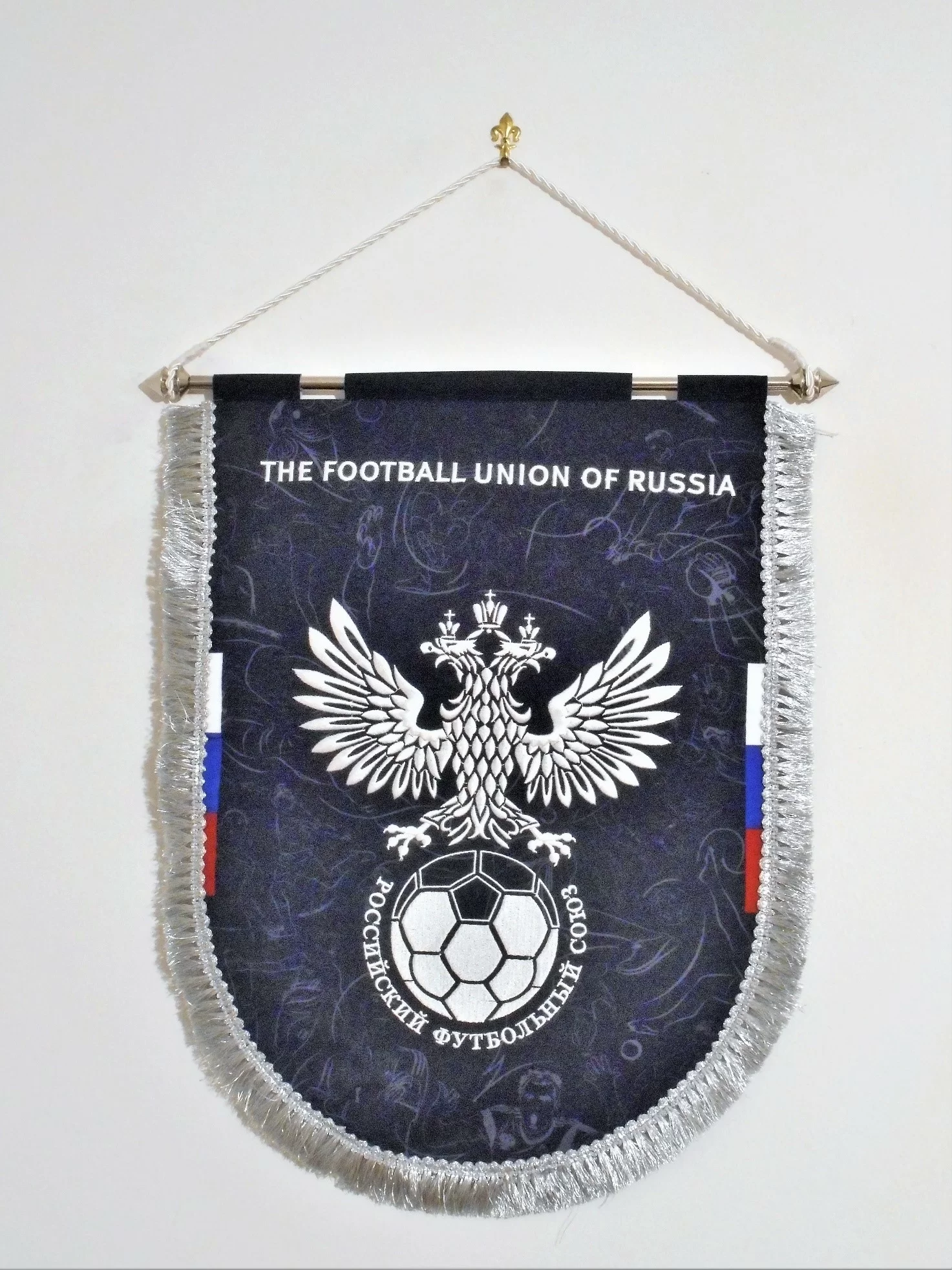 In primo luogo il colore nero sullo sfondo assolutamente inusuale poiché non solo mai utilizzato (in passato la Russia ha utilizzato prevalentemente gagliardetti con l’iconico rosso) ma anche perché al nero sono abbinati dei motivi grafici (in questo caso dei calciatori in azione) che fanno l’esemplare assolutamente irriproducibile debellando, pertanto, la sempre più diffusa tendenza a produrre copie non autorizzate da parte di “commercianti” o presunti tali. In aggiunta, ai lati, molto azzeccata l’idea di richiamare i colori della bandiera nazionale. Infine la scelta del nero è assolutamente originale. Infatti, nel panorama internazionale verosimilmente non esistono, sia a livello di club che di rappresentative nazionali, altri casi di gagliardetti in nero.