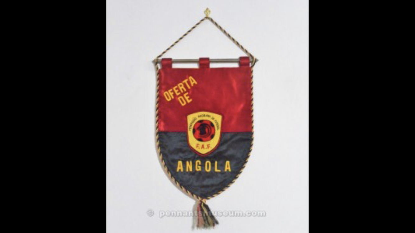 PENNANTSMUSEUM.COM – Nasce nel 1979 la Federazione angolana e l’anno dopo si iscrive alla FIFA e alla federazione africana. Una federazione pertanto giovane che, al momento, ha vissuto il suo momento di gloria con la qualificazione ai mondiali di Germania del 2006. In quella competizione si trovò a fronteggiare il Portogallo di Ronaldo, il Messico e l’Iran. Chiuse in maniera onorevole con una sconfitta e due pareggi. Oltre a questo l’Angola ha preso parte in due occasioni al massimo trofeo continentale, la Coppa d’Africa, raggiungendo il massimo risultato nel 2008 con i quarti di finale. Lo stemma riportato nel gagliardetto della settimana è uno scudo giallo su cui è apposto un pallone rosso e nero su cui staglia il profilo di un’antilope nera con le lunghe corna ricurve. All’animale, uno dei simboli nazionali, e abbinato il soprannome dei giocatori, appunto le antilopi nere. Il colore rosso e nero invece è tratto da quello della bandiera nazionale dove il rosso rappresenta il sangue versato dagli angolani per ottenere l’indipendenza mentre il nero è rappresentativo del continente nero, l’Africa. La federazione calcistica nazionale organizza il campionato nazionale (Girabola) che nel corso degli anni ha visto quindici successi del Petro Atletico una delle formazione della capitale Luanda.