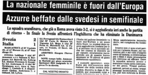 Ma andiamo con ordine. Il primo incontro è datato 13 maggio 1982 e nell’amichevole disputatasi ad Helsinborg le gialloblù si imposero per 2-0. Per dovere di cronaca è giusto precisare che la partita si disputò secondo le regole locali ovvero durata del match di 90′ ed utilizzo del pallone n° 4 (all’epoca nel Belpaese le partite erano di 80′ e si impiegava il pallone n°5). Seguì il doppio ko nella semifinale dell’Europeo: 2-3 allo stadio Flaminio l’8 aprile 1984 e il 2-1 a Solna venti giorni dopo. La striscia di sconfitte si interruppe nel match successivo, l’1 novembre 1984. Le scandinave si confermano un avversario indigesto perché le italiane sbloccano il punteggio al 36′ con la scozzese Reilly, falliscono un paio di occasioni per raddoppiare e a cinque minuti dal termine, in contropiede, incassano il gol di Videkull. La gara si giocò al “Marassi” di Genova per raccogliere fondi per l’Ospedale pediatrico Gaslini.