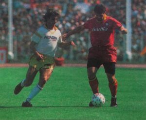 Nella partita di Roma, invece, il numero 11 è stato indossato da Alberto Di Chiara. Romano e fratello minore di Stefano, anche lui militante nel Lecce in quella stagione, Di Chiara ha vissuto le sue migliori stagioni soprattutto a Firenze, dove il tecnico brasiliano Sebastiao Lazaroni gli cambiò ruolo da ala a terzino e a Parma con Nevio Scala allenatore, dove si guadagnò anche la convocazione in nazionale. A Lecce, oltre alla stagione in serie A, ha vissuto da protagonista la storica promozione del 1985, segnando il gol promozione nella decisiva trasferta di Monza; per lui in Salento 91 presenze e 13 gol.