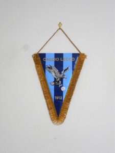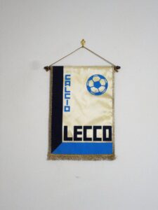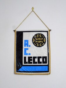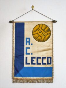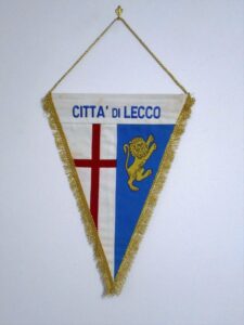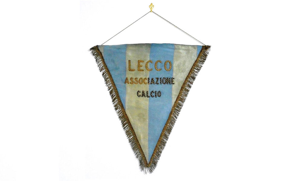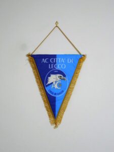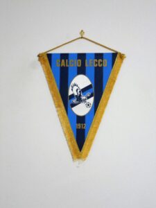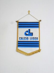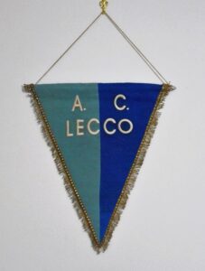 Dal punto di vista sportivo, la squadra lombarda vanta tre presenze nella massima serie, tutte negli anni Sessanta. Circa i gagliardetti, negli anni Sessanta, il Lecco utilizzava esemplari a strisce orizzontali bianco – celesti ovvero in blu e celeste con la sola indicazione della denominazione societaria. Nello stesso periodo furono realizzati altri gagliardetti con ripartizione blu e celeste mentre tra gli anni Settanta e ottanta entrarono in uso dei gagliardetti di formato rettangolare con una banda laterale unita a forma di L nei colori blu e celeste e con un pallone accanto.