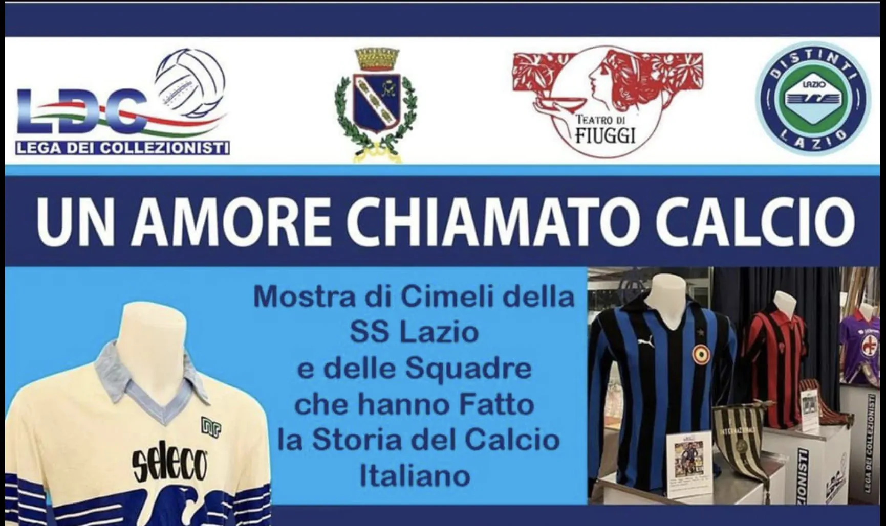 Un’occasione unica, a solo mezz’ora dalla capitale, per godere da vicino di maglie memorabili, preziosi gagliardetti e tanti altri autentici pezzi di storia calcistica italiana, altrimenti confinati alle collezioni private di appartenenza.