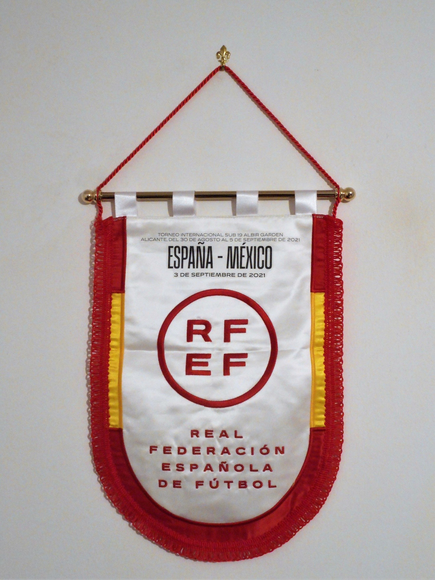 Utilizzato sia dalle rappresentative giovanili, questo odierno si riferisce alla categoria degli Under 19, che dalla nazionale maggiore, tale gagliardetto differisce dalla simbologia presente sulla maglia dei giocatori poiché su quest’ultima è riportato il vecchio stemma della federazione iberica, per intenderci il simbolo con cui la Spagna ha conquistato qualche anno fa un campionato del mondo e due campionati europei.