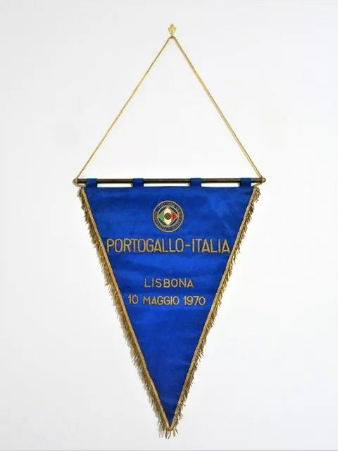 Il gagliardetto della partita, scambiato tra i capitani, era il classico in uso dalla nazionale a partire dagli anni sessanta (mondiali in Cile del 1962). Da quel periodo, infatti, era stato realizzato, sempre dalla stessa ditta romana fornitrice della Federazione, con analoghe fattezze e gli unici cambiamenti furono apportati per le competizioni internazionali come il Campionato d’Europa del 1968, quando in testa al gagliardetto trovò spazio la scritta “Coppa Henry Delaunay” (limitatamente alla semifinale con l’URSS) e la Coppa del Mondo 1970 in cui i gagliardetti per il girone di qualificazione riportavano, in alto, la dicitura Coppa Rimet.