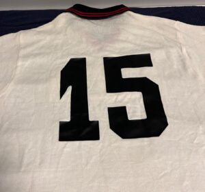 Sul retro, troviamo in nero, il numero 15 di un materiale di plastica morbida. Questo numero fu indossato da vari calciatori durante le varie stagioni di utilizzo della maglia.