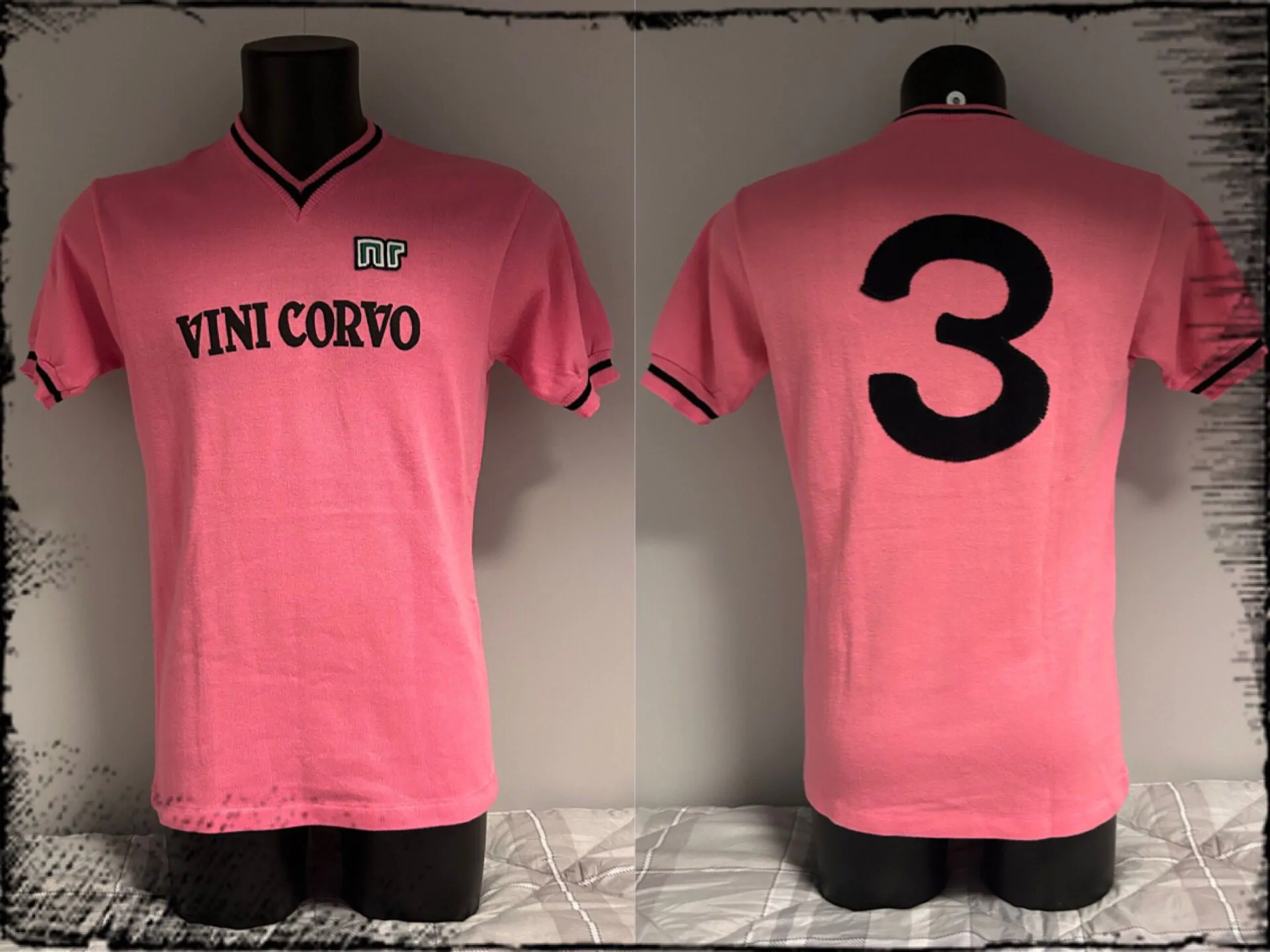 Per questa stagione, il Palermo ritorna ad una maglia un po’ più classica, tutta rosa con inserti neri all’altezza del colletto con scollo a V e dei bordi manica; anche il numero è nero, in panno. Nella precedente stagione, invece, il modello (bellissimo) era a bande verticali rosa e nero, un modello che poi il Palermo ripropose anche a metà anni 90.