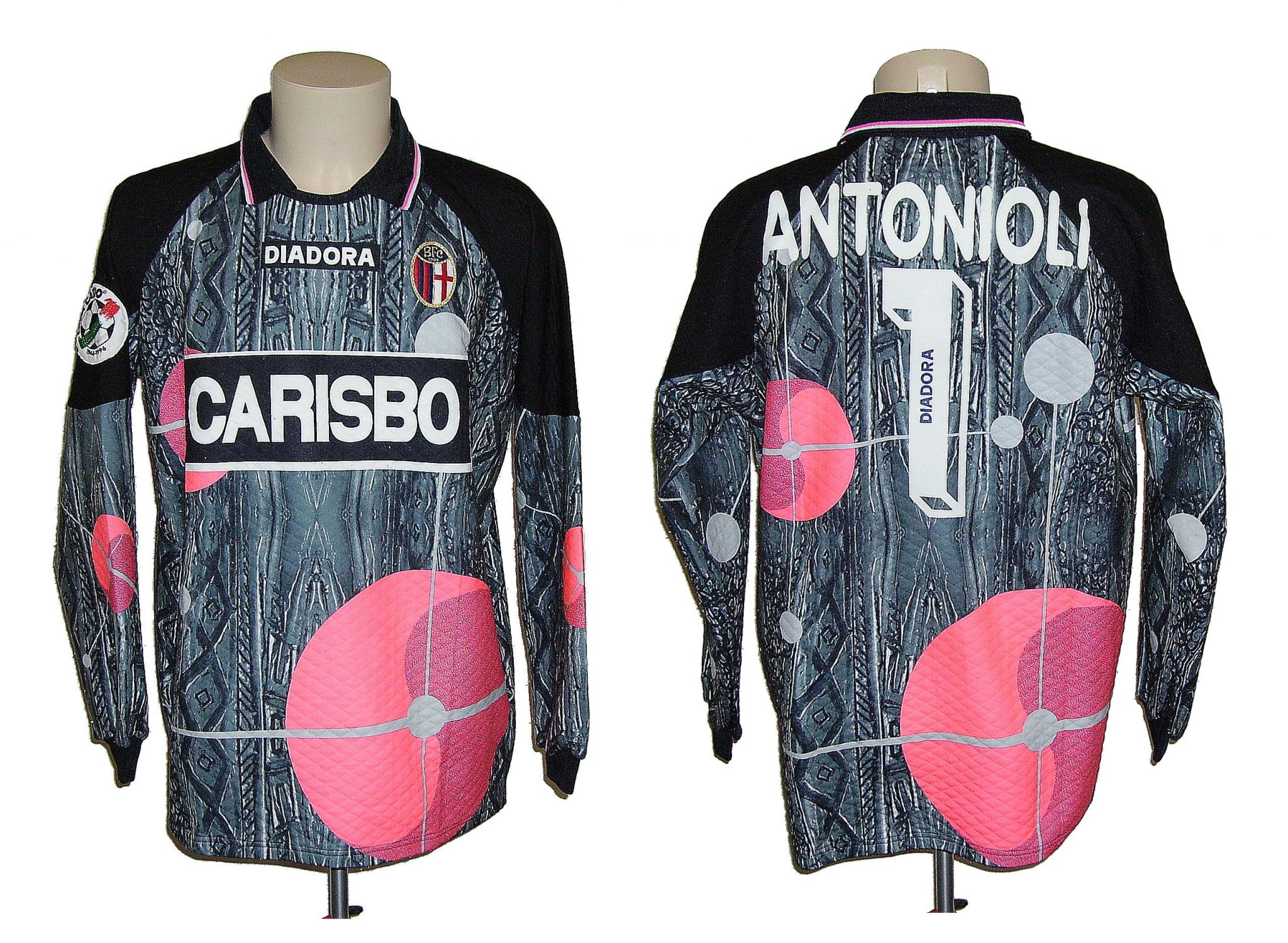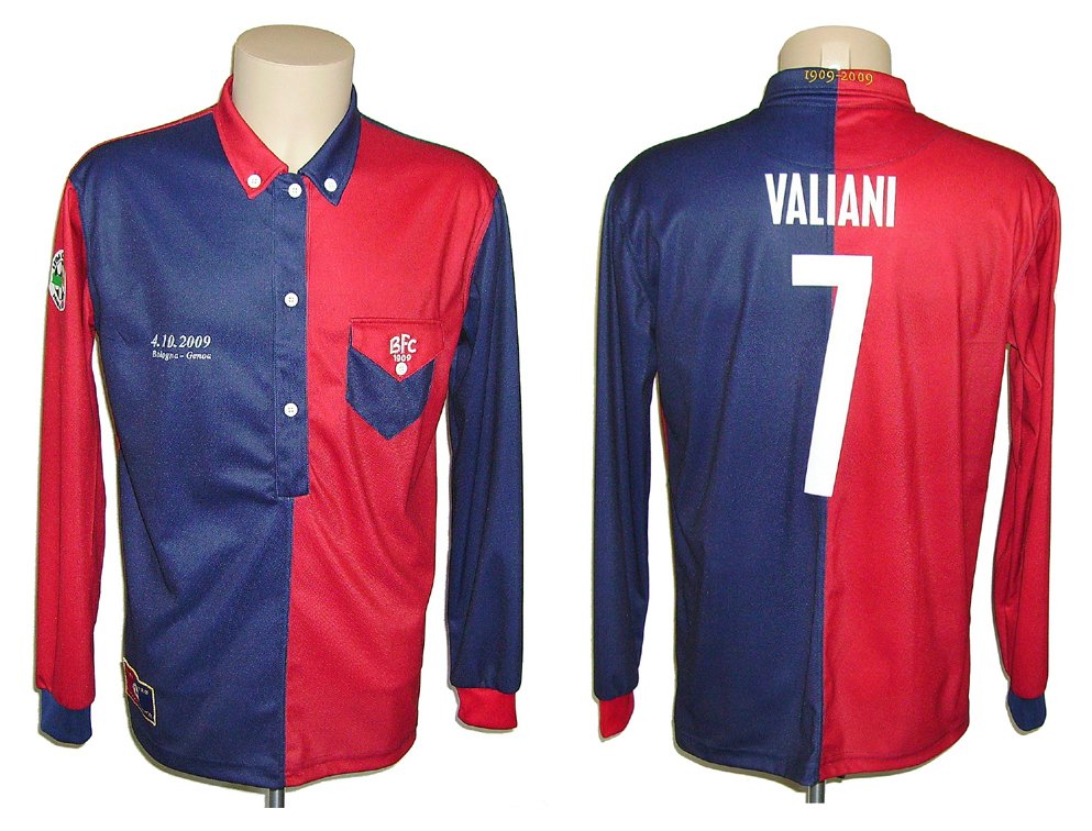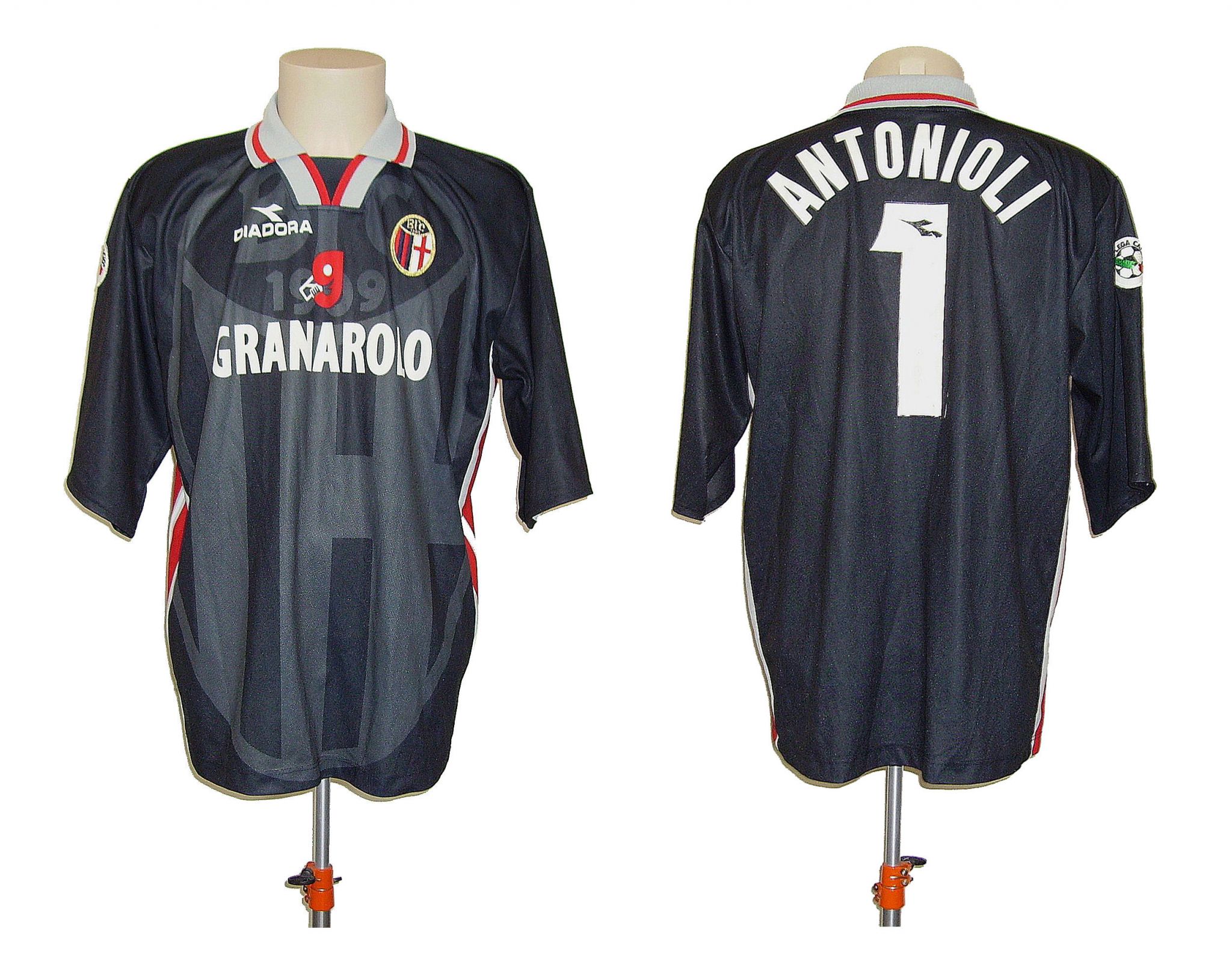 “Un aneddoto…?”, risponde il nostro amico collezionista a domanda precisa, “Vi racconto della Bertagni verde 82-83. Riesco a contattare Giorgio Roselli, attuale allenatore del Monopoli, mentre ero alle prese con il libro che abbiamo pubblicato sulle maglie del Bologna, e gli chiedo se è ancora in possesso di qualche maglia del Bologna; lui mi manda le foto ma mi dice anche che ha tenuto una maglia per ogni stagione che ha giocato, che quella è l’unico ricordo che ha del Bologna, e non è intenzionato a venderla. Lo ringrazio dicendogli che se per caso cambiasse idea, sarei disposto a fare un sacrificio e di conseguenza una grossa offerta per quella maglia. A questo punto mi scrive un messaggio dove mi dice testualmente: mandami il tuo indirizzo e lascia stare i soldi, queste cose si regalano a chi ci tiene così. Anche io ci tengo, ma qualcosa dovrò pur ridare al calcio che per il 43° anno consecutivo mi fa fare il professionista! Di maglie me ne hanno regalate decisamente poche, e questo bel gesto vale davvero la pena ricordarlo. Vorrei anche ricordare un episodio con un altro calciatore, di cui non faccio il nome perché ancora in attività, che per due anni consecutivi non solo mi ha procurato la maglia promessa, ma l’ha addirittura portata sotto casa mia. Non so quanti giocatori professionisti, oltre a mantenere le promesse fatte, siano capaci di gesti del genere…”.