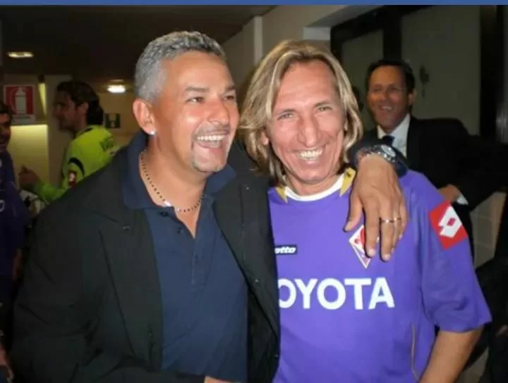 Sono arrivato a Firenze un venerdì mattina: mi sono spogliato per l’allenamento, ho fatto il torello coi miei nuovi compagni e poi siamo andati in ritiro. Ho mangiato insieme a Baggio, Dunga e Di Chiara: tutta gente che avevo visto quindici giorni prima dalla televisione giocare contro l’Atletico Madrid in Coppa Uefa. A tavola hanno portato un bicchiere di vino a testa, ma Roberto mi aveva messo dentro tanto di quell’aceto che non sapevo se vomitare oppure sputarglielo in faccia. Alla fine l’ho buttato giù. A Roberto piaceva scherzare, era un ragazzo divertente e simpatico. Baggio era un compagnone. L’ho rivisto l’ultima volta quando abbiamo organizzato la partita in onore di Stefano Borgonovo a Firenze: quel giorno io giocavo, lui purtroppo non lo ha potuto fare per i problemi al ginocchio.