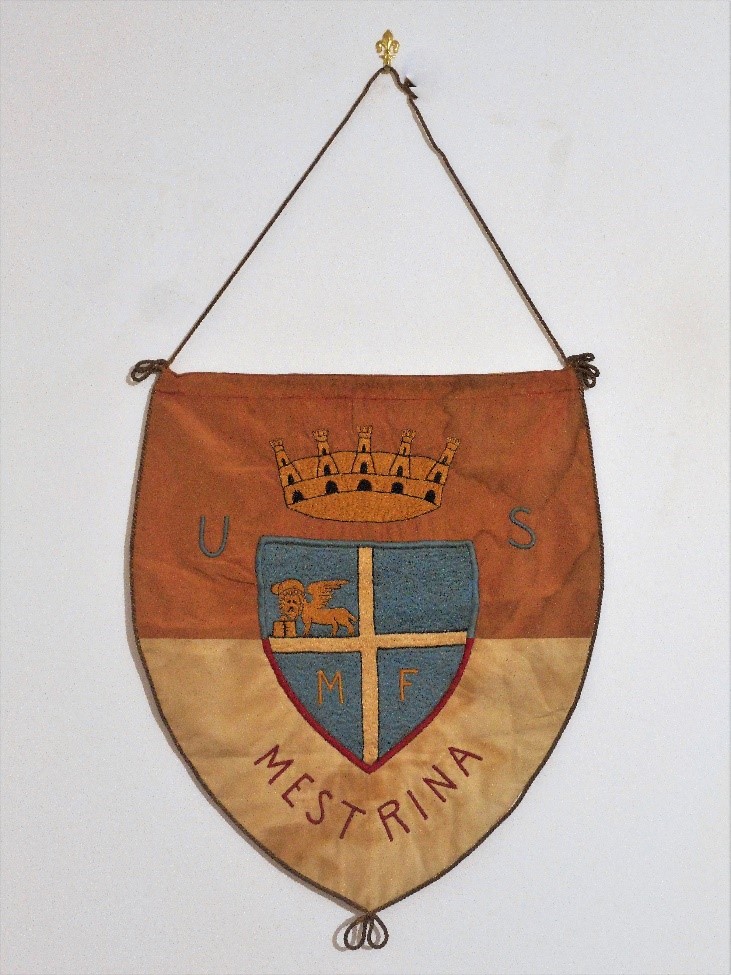 M e F due semplici lettere nello stemma di un vecchio gagliardetto dell’Unione Sportiva Mestrina.