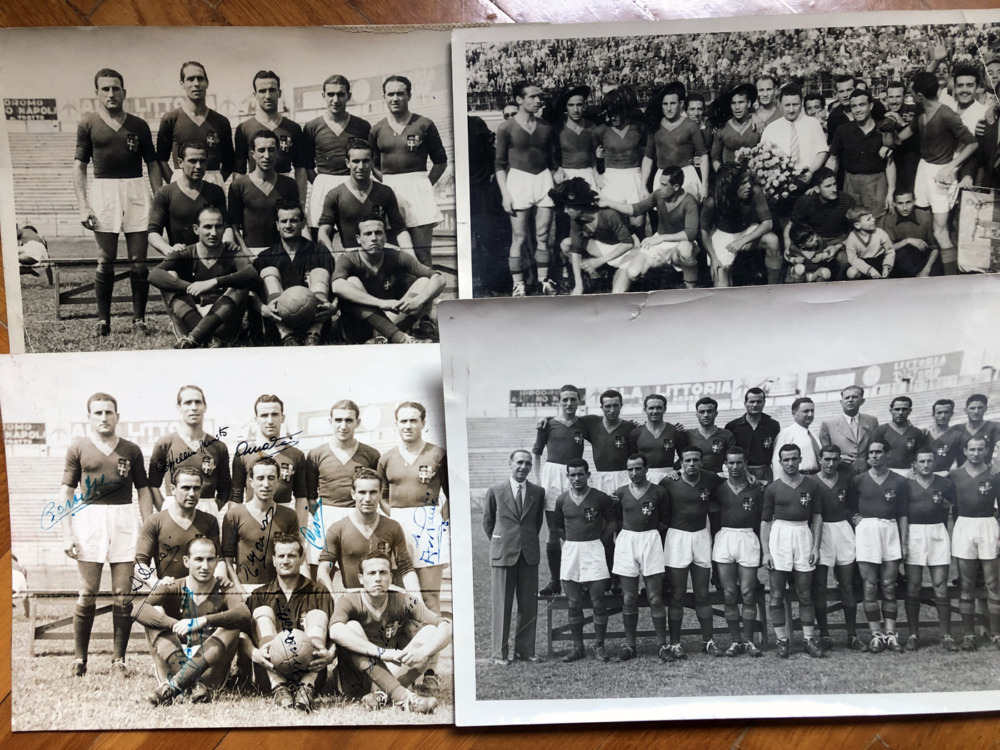 Credo di aver avuto fortuna, per esempio, proprio con la foto autografata della formazione del primo scudetto. L’ho trovata sul sito di un negozio d’antiquariato. Ho scritto il mio interessamento al proprietario e chiesi il prezzo … nel mentre pensavo a cosa avrei potuto vendere o come fare straordinari in tipografia … pensavo a pagamento in più rate. Poi la proposta arrivò ad un prezzo molto più basso rispetto a ciò che mi aspettavo … non riuscivo a credere ai miei occhi …